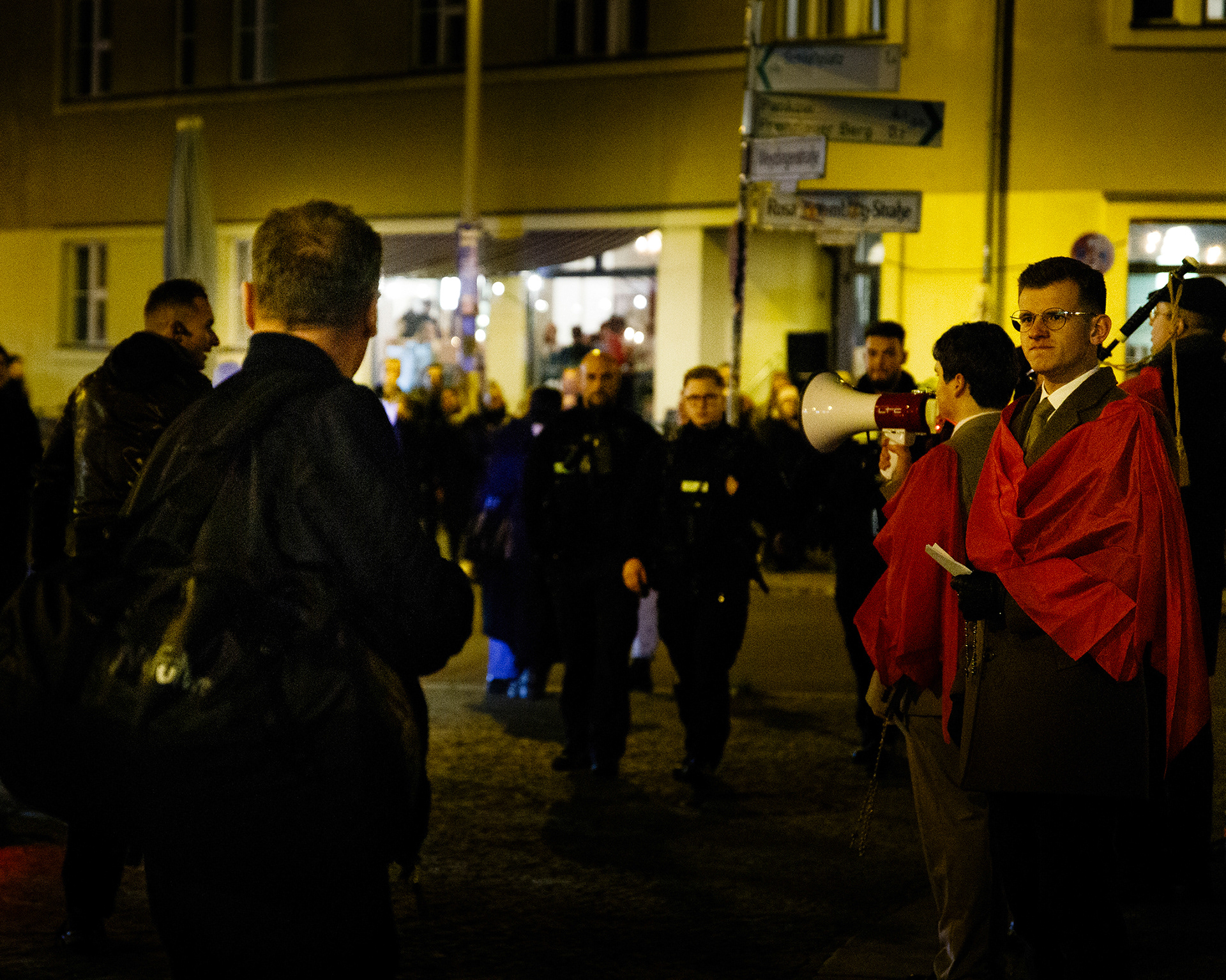 People connected to the production periodically came out and recorded or simply looked at the TFP demonstrators. Berlin, Germany 2024